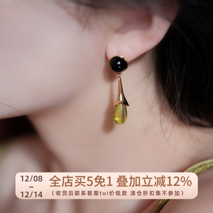 《游园惊梦》法式复古喇叭花水滴长款耳环中古vintage气质耳饰