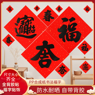 2026马年全背胶小福字门贴纸新年春节装饰书法字自粘胶大福帖斗方