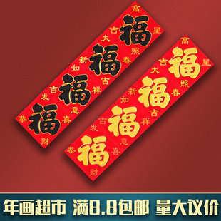 2026春节马年画过年大福字入户门贴纸迎门墙幅贴窗花对联书法金黑