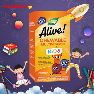 美国Alive儿童综合维生素咀嚼片多种复合维生素护眼改善挑食120粒